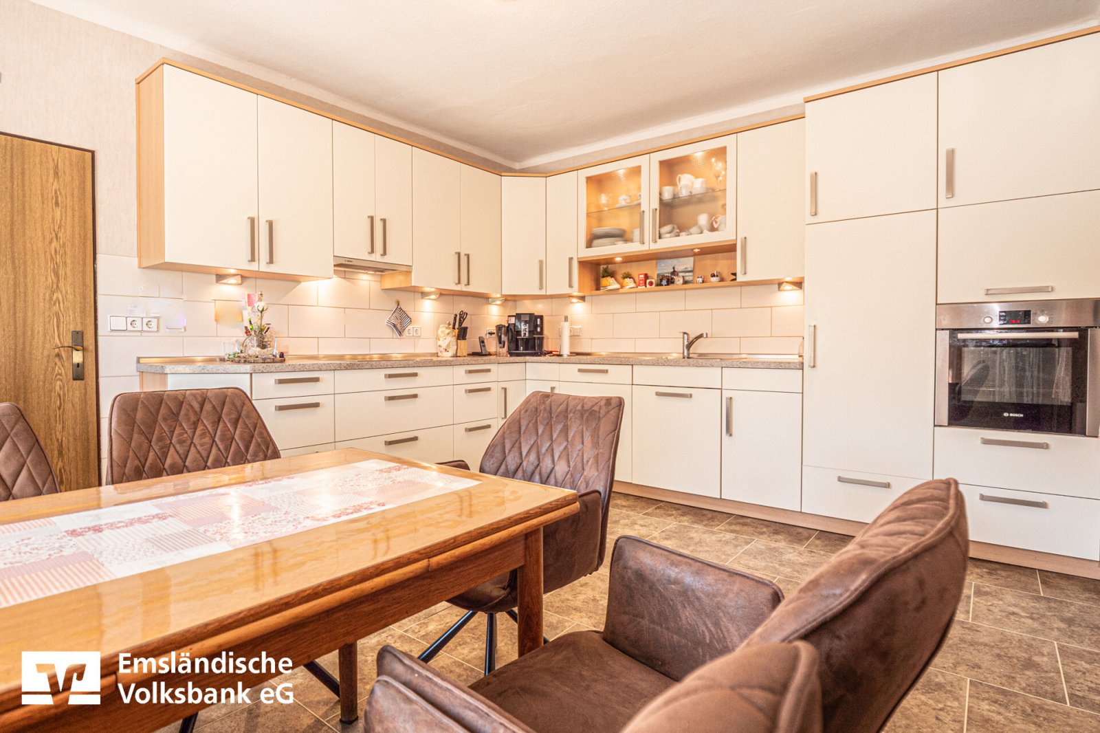 Das Wohnhaus bietet großzügige, durchdachte Lebensräume, moderne, behagliche Atmosphäre und flexible Nutzung. Die Wohnküche mit warmen Holztönen, großen Fenstern und die im Kaufpreis enthaltene helle Einbauküche lädt zum Kochen und Verweilen ein; das renovierte Bad setzt frische Akzente; in den vielen lichtdurchfluteten Räumen findet sich auch für eine große Familie Platz.