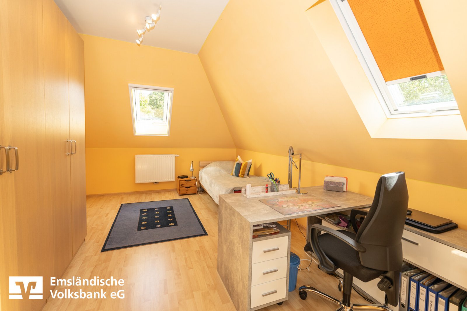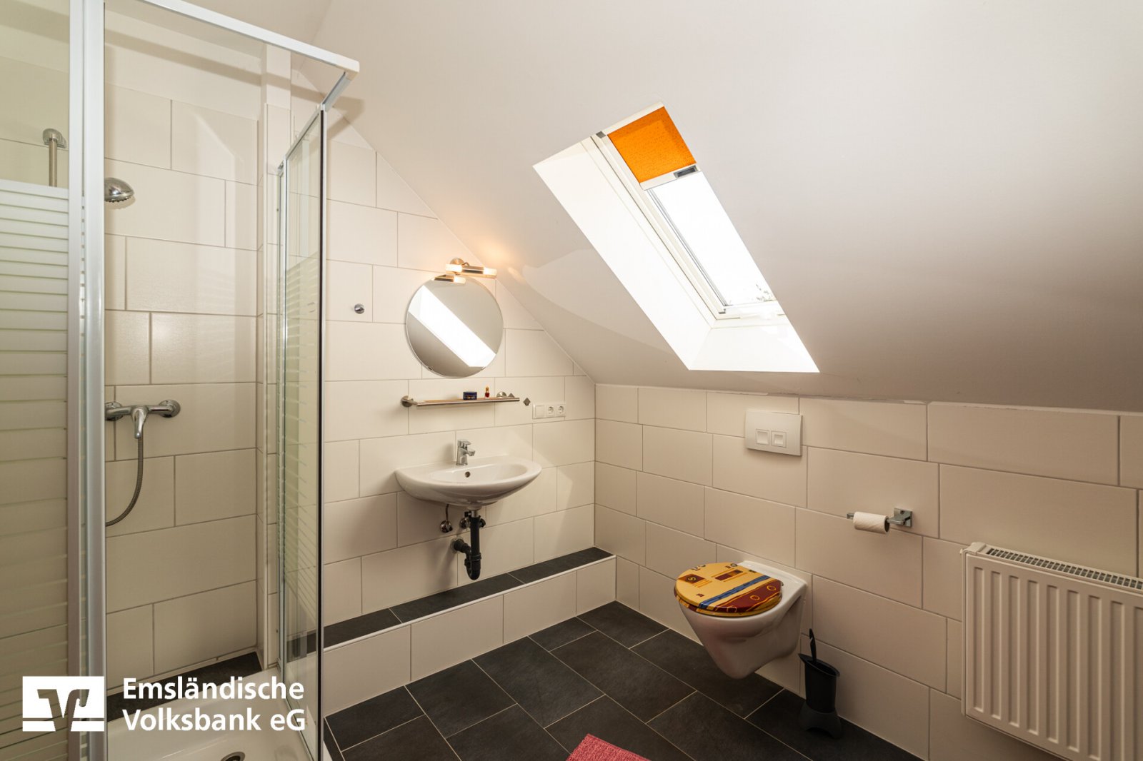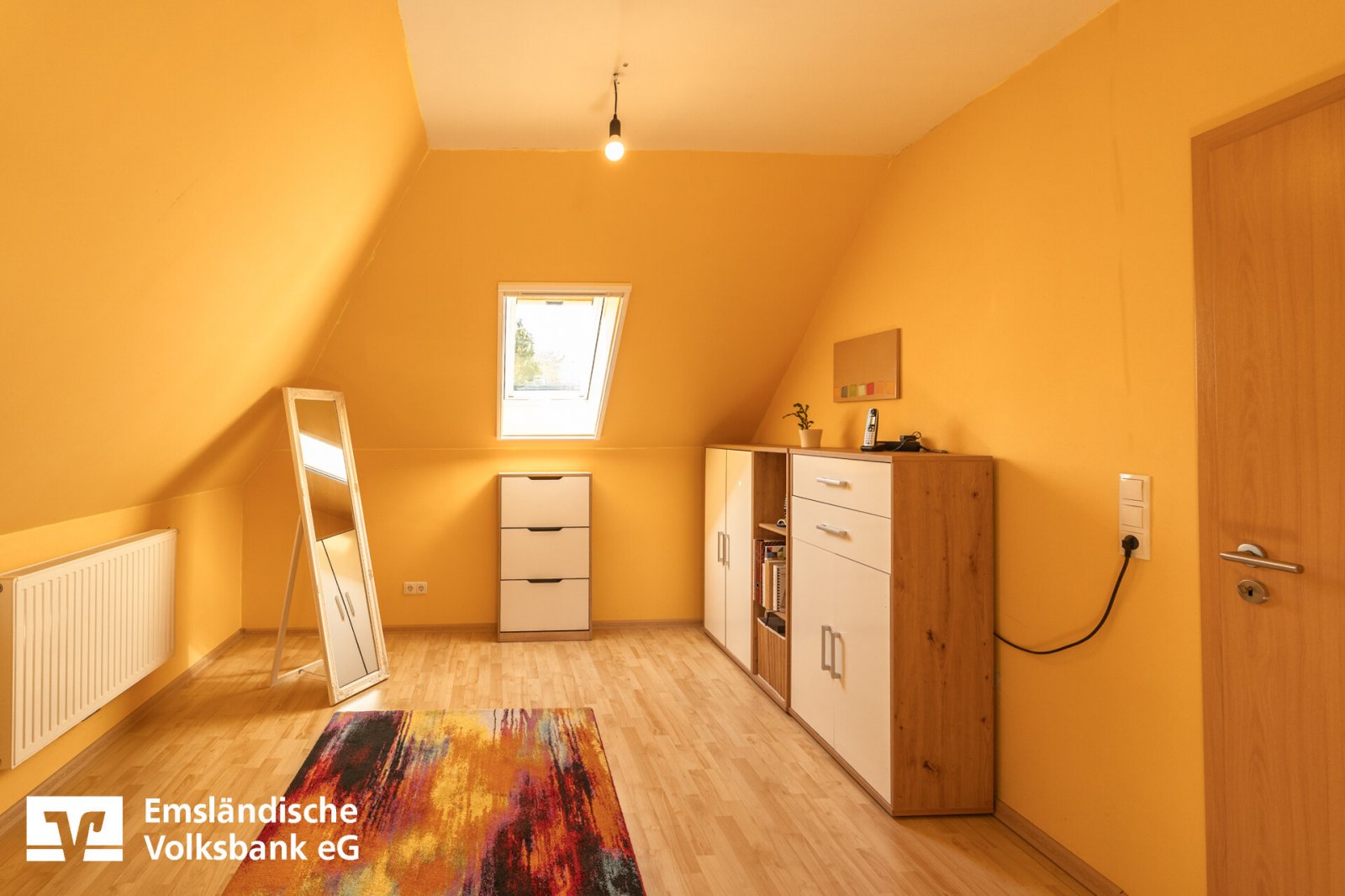 Das Dachgeschoss wurde 2014 ausgebaut und umfasst drei weitere Zimmer, einen Flur, ein zweites Badezimmer sowie einen Heizungsraum. In einem der Zimmer sind Küchenanschlüsse vorhanden, sodass sich dieser Bereich flexibel nutzen lässt.