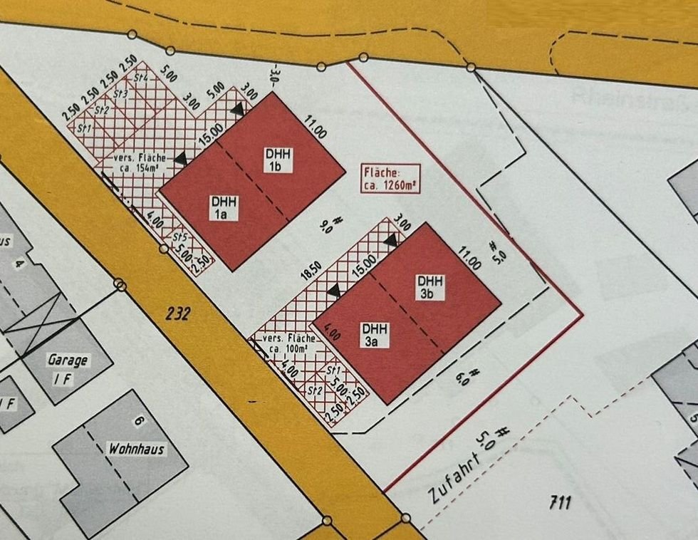 Laut Anfrage beim zuständigen Bauamt ist die Bebauung mit vier Doppelhaushälften inklusive Stellplätzen möglich. Alternativ besteht die Option, das Grundstück zu teilen und jeweils zwei Doppelhaushälften zu errichten.