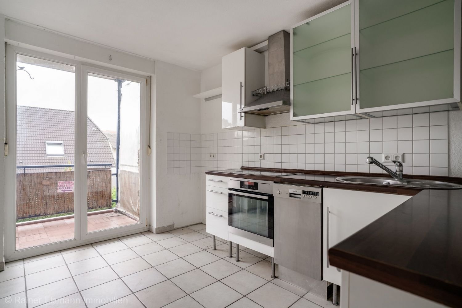Die Einbauküche samt elektrischer Geräte verbleibt in der Wohnung – Zugang zum Balkon