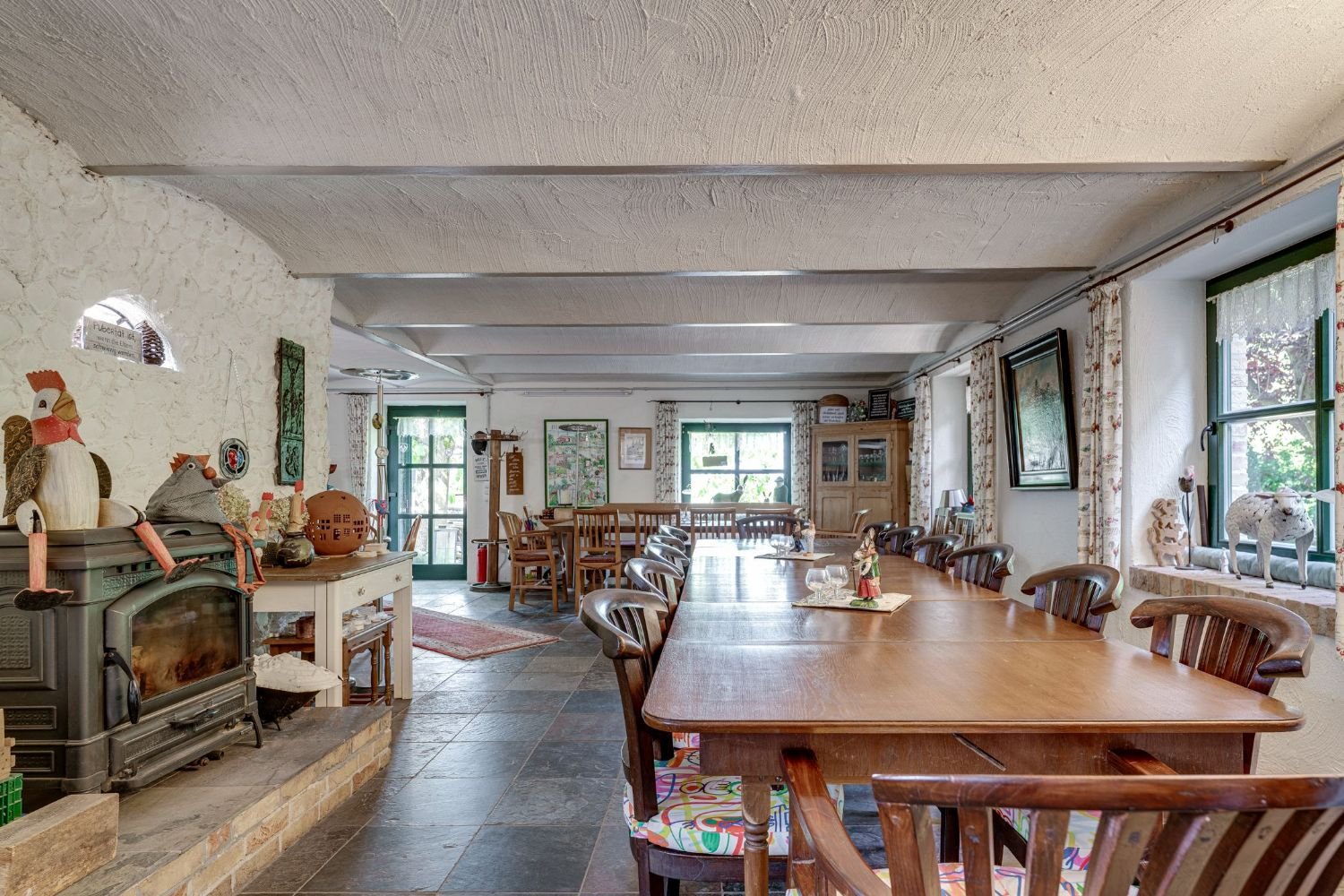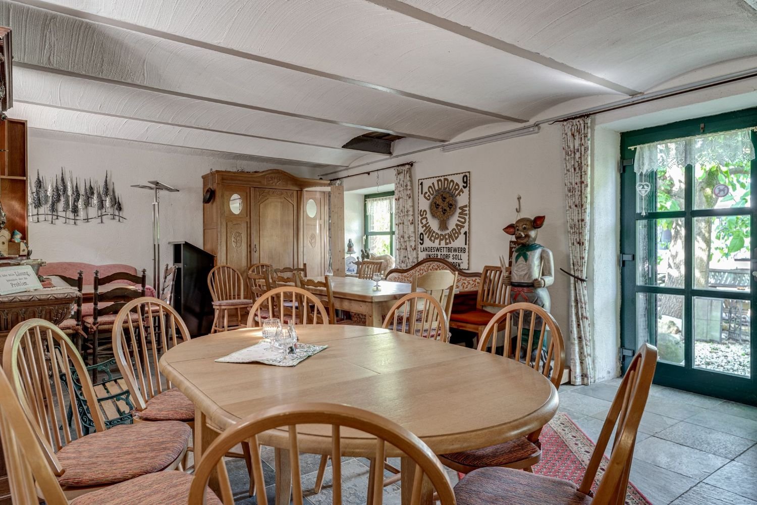 Der Hof besticht durch seinen besonderen Charme und seine gepflegte Erscheinung, gelegen inmitten einer wunderschönen Naturlandschaft. Die ländliche Umgebung verleiht dem Anwesen eine ruhige, idyllische Atmosphäre – ideal für Familien, Investoren oder Betreiber, die ein Mehrgenerationenhaus oder eine Gastronomie realisieren möchten.