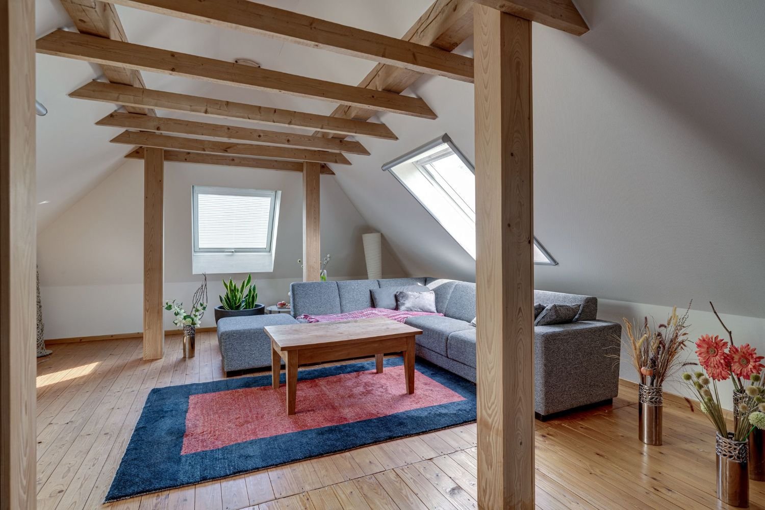 - Wohnung 1: ca. 85 m² über Ober- und Dachgeschoss