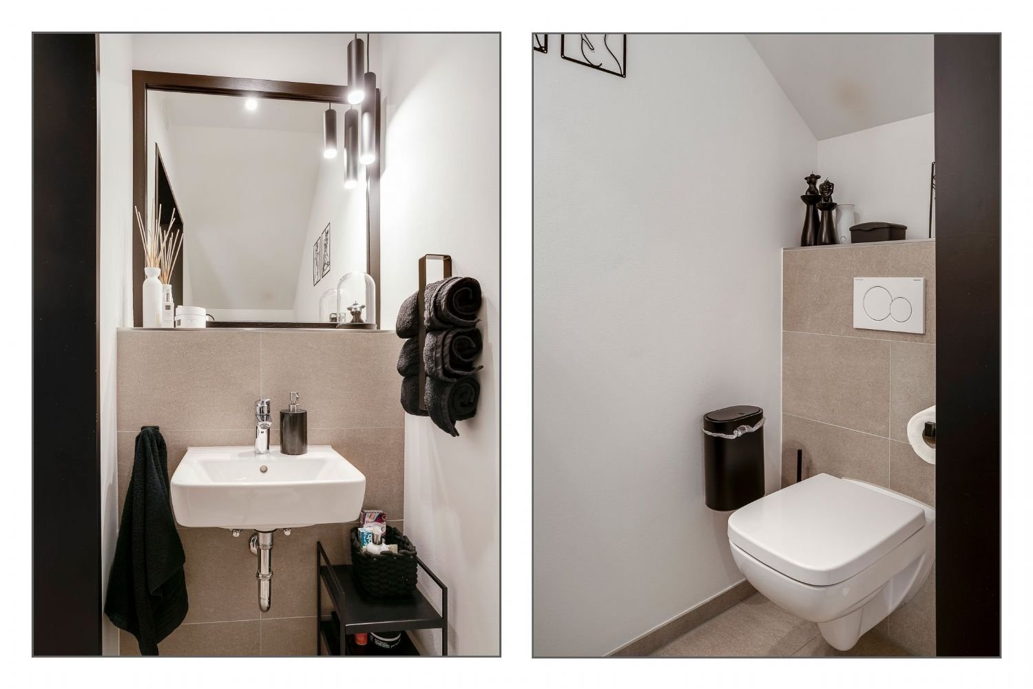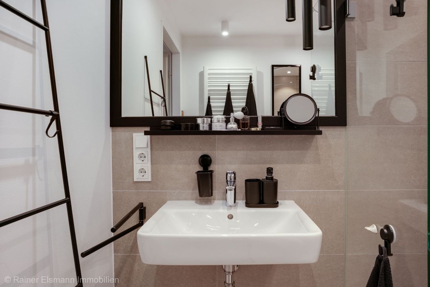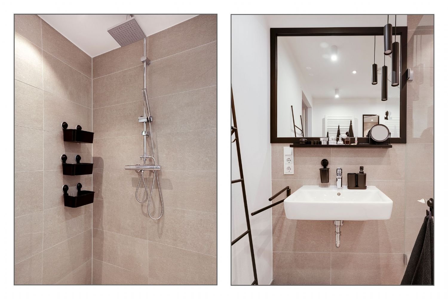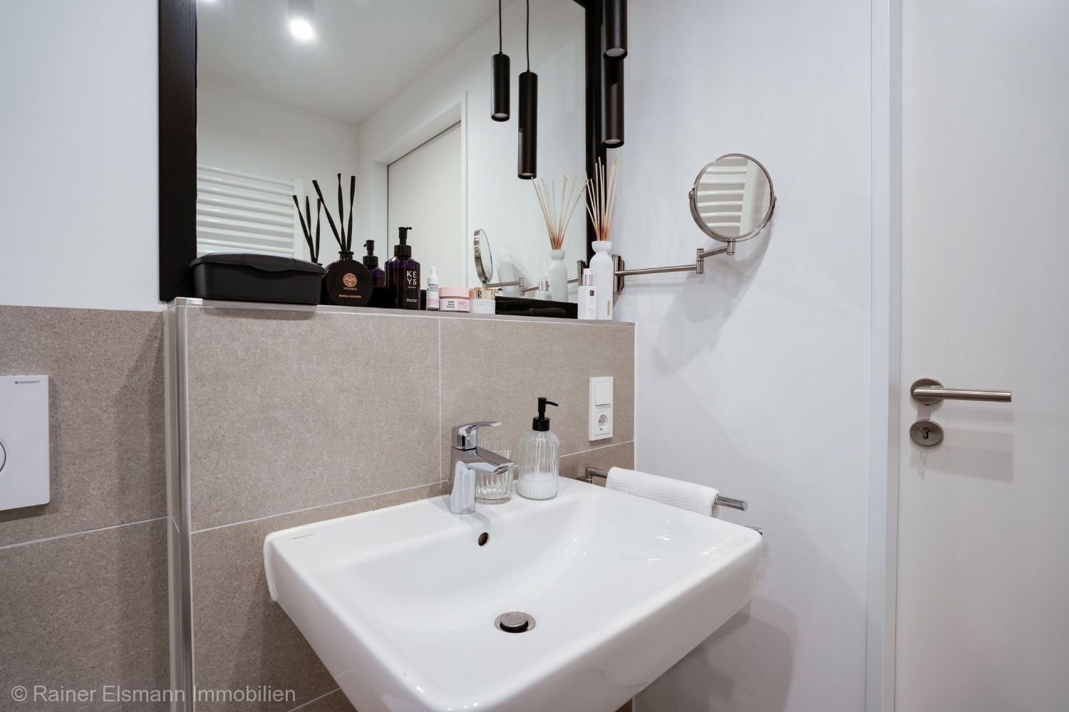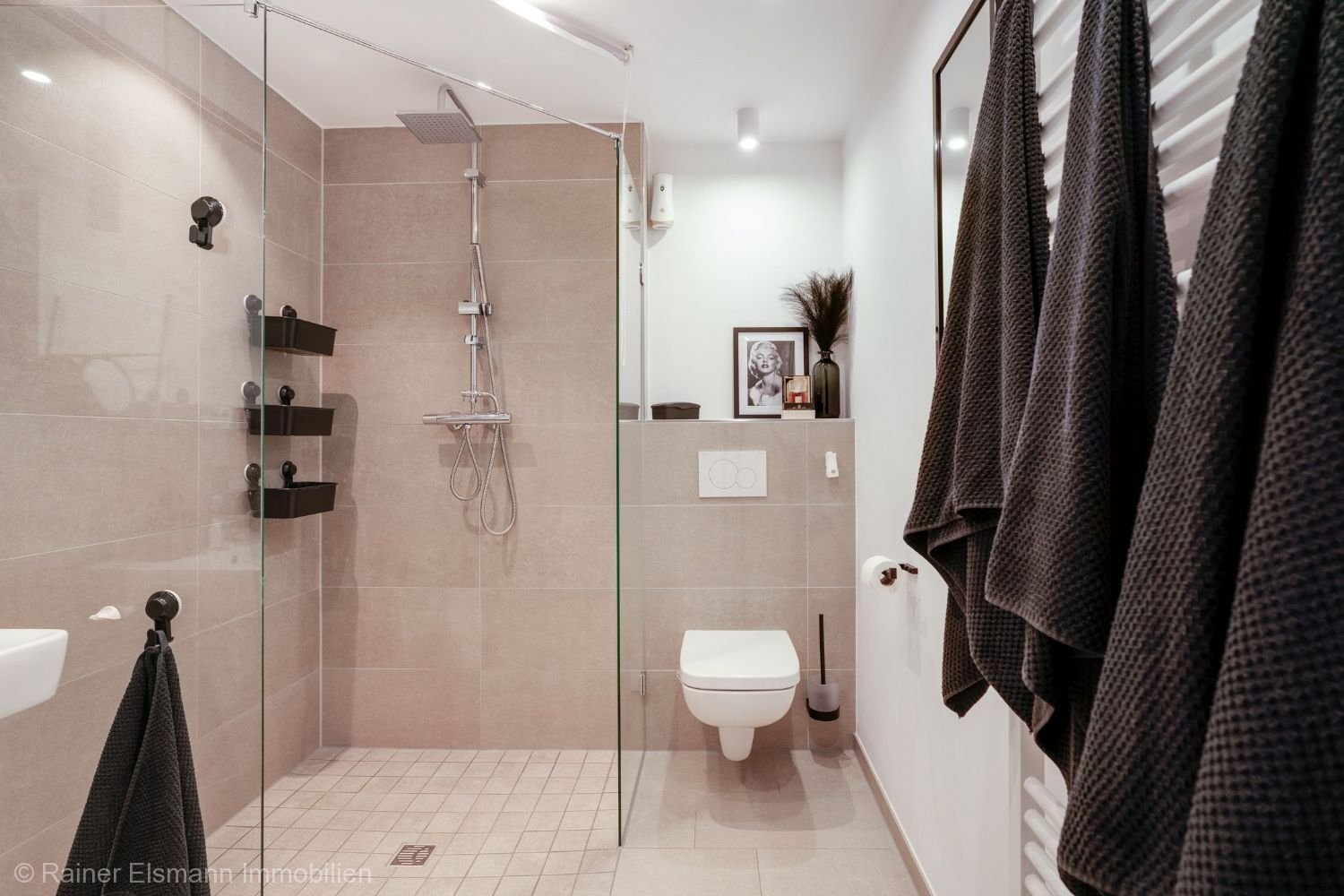 1. Obergeschoss: Waschtisch, Dusche, WC, Handtuchtrockner