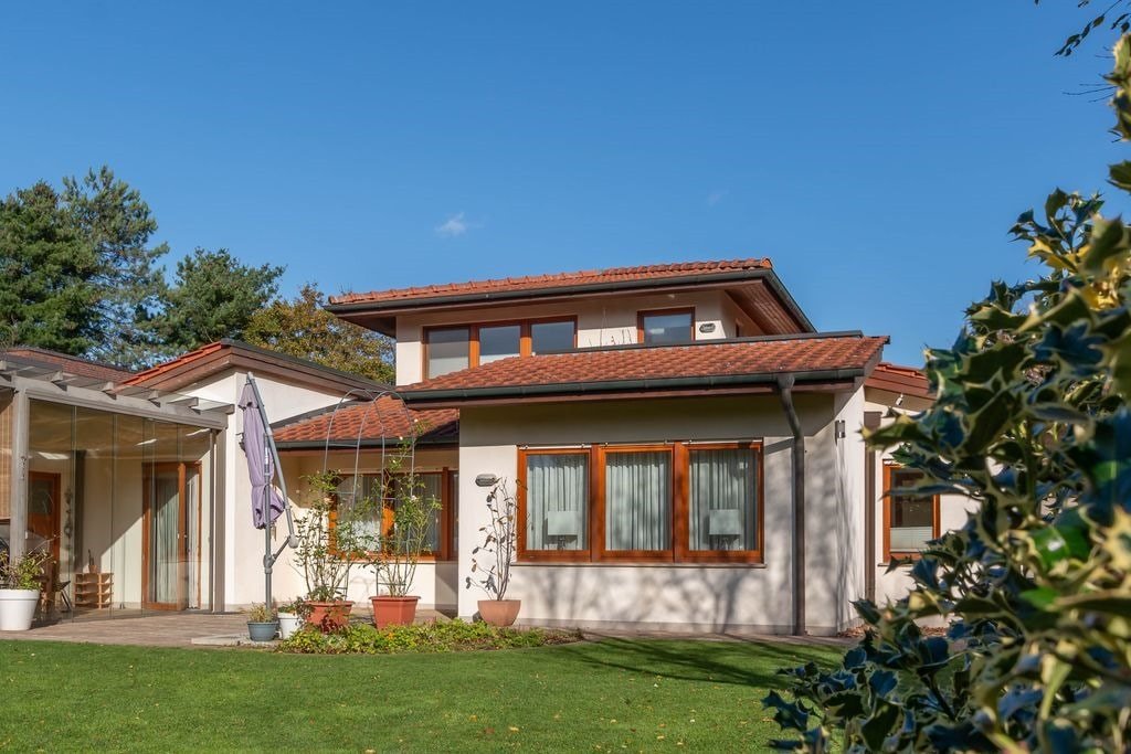 Der Garten ist nicht einsehbar und bietet echte Privatsphäre. Eine Dachterrasse erweitert das Wohnen nach draußen.